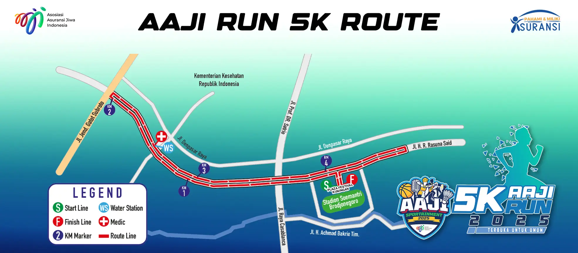 AAJI RUN 2025 merupakan salah satu rangkaian acara AAJI SPORTAINMENT 2025, sebuah kompetisi tahunan antar perusahaan asuransi dan reasuransi yang diselenggarakan oleh Asosiasi Asuransi Jiwa Indonesia (AAJI). Terdapat 1 (satu) kategori dalam AAJI RUN 2025, yaitu kategori 5K.